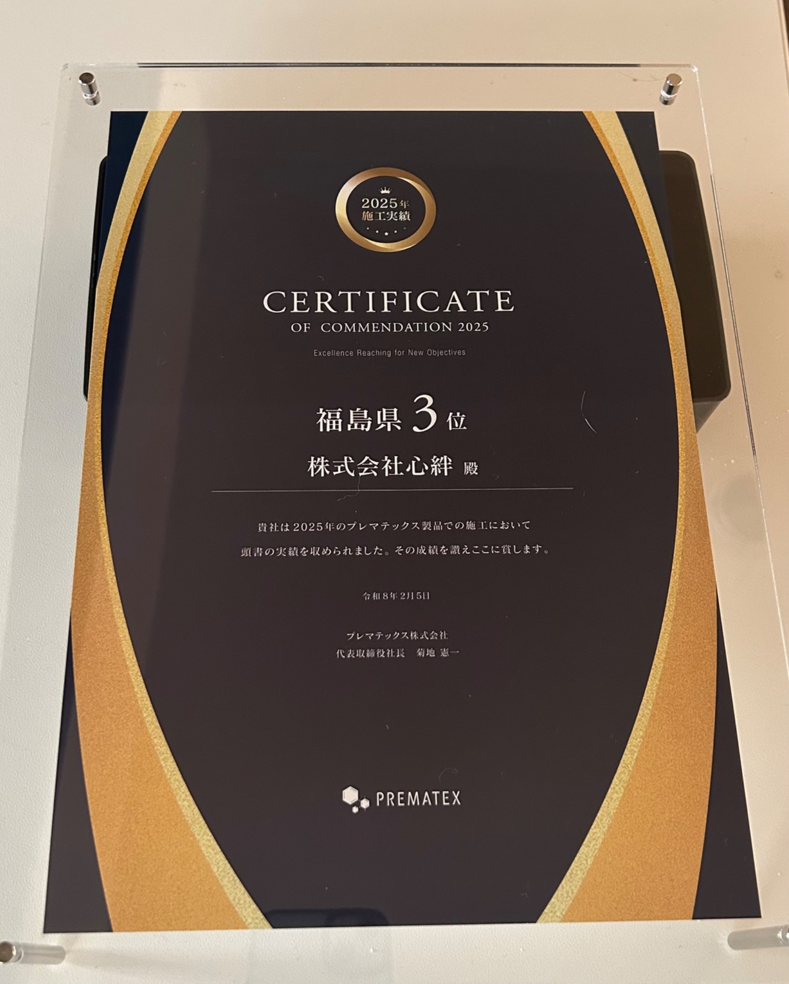 プレマテックス株式会社様の2025年施工実績において福島県 第3位として表彰されました。